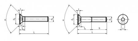 Особенности и применение винтов с потайной головкой под шестигранный ключВинты с потайной головкой и шлицем под шестигранный ключ / биту по стандарту DIN 7991 являются аналогом винтов с потайной головкой по ГОСТ 17475. Винты по DIN 7991 применяются в случаях, когда необходима повышенная прочность резьбового соединения. Шестигранный потайной шлиц винтов по DIN 7991 позволяет осуществлять быстрый монтаж с применением пневматического или электрического инструмента и приложением значительных усилий затяжки. По этой причине винты по DIN 7991 применяются при конвейерной сборке высокопрочных узлов, механизмов, агрегатов. Спецификация: |