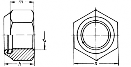 Особенности и применение контргаекОсобенностью гаек по DIN 985 является неметаллическая вставка, выступающая в роли фиксатора резьбового соединения. Диаметр вставки меньший, чем диаметр резьбы сопрягаемого болта (винта) - при затяжке соединения вставка деформируется и за счёт силы трения достигается стопорение. В качестве материала для вставки обычно используют синтетические материалы: нейлон, полиамид и др.. Спецификация: |