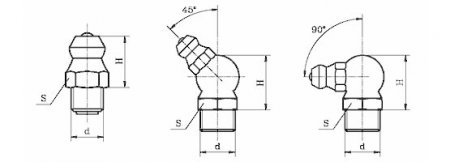 Пресс-масленки по ГОСТ 19853 тип 1 — прямые (180 градусов) М6х1, М8х1, М10х1, К1/4, K1/8 и тип 2 — угловые (45 и 90 градусов) М6х1, М8х1, М10х1, K1/8.